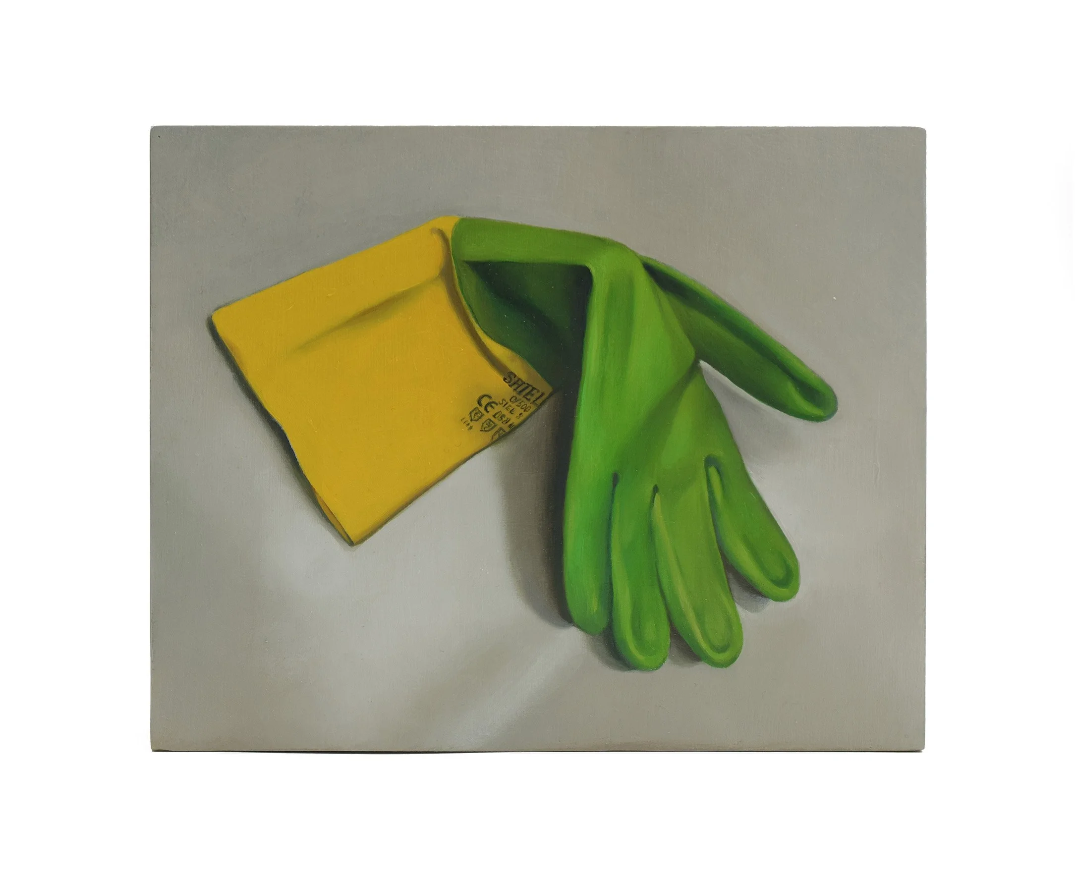 Gant vert (Green glove), 2025, Oil on wood panel, 6.2 x 8.6 in. \ Huile sur panneau de bois, 16 x 22 cm