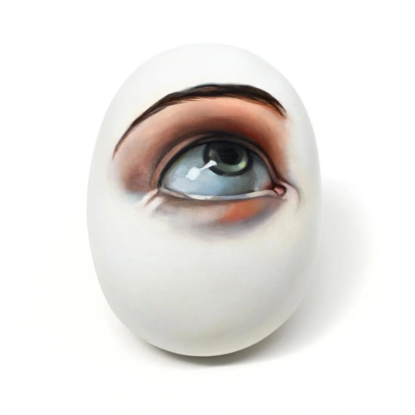 Oeil vers le haut ( Eye up), 2025, Oil painting on ceramic, 7 x 5.5 x 2.7 in. Peinture à l'huile sur céramique, 18 x 14 x 7 cm
