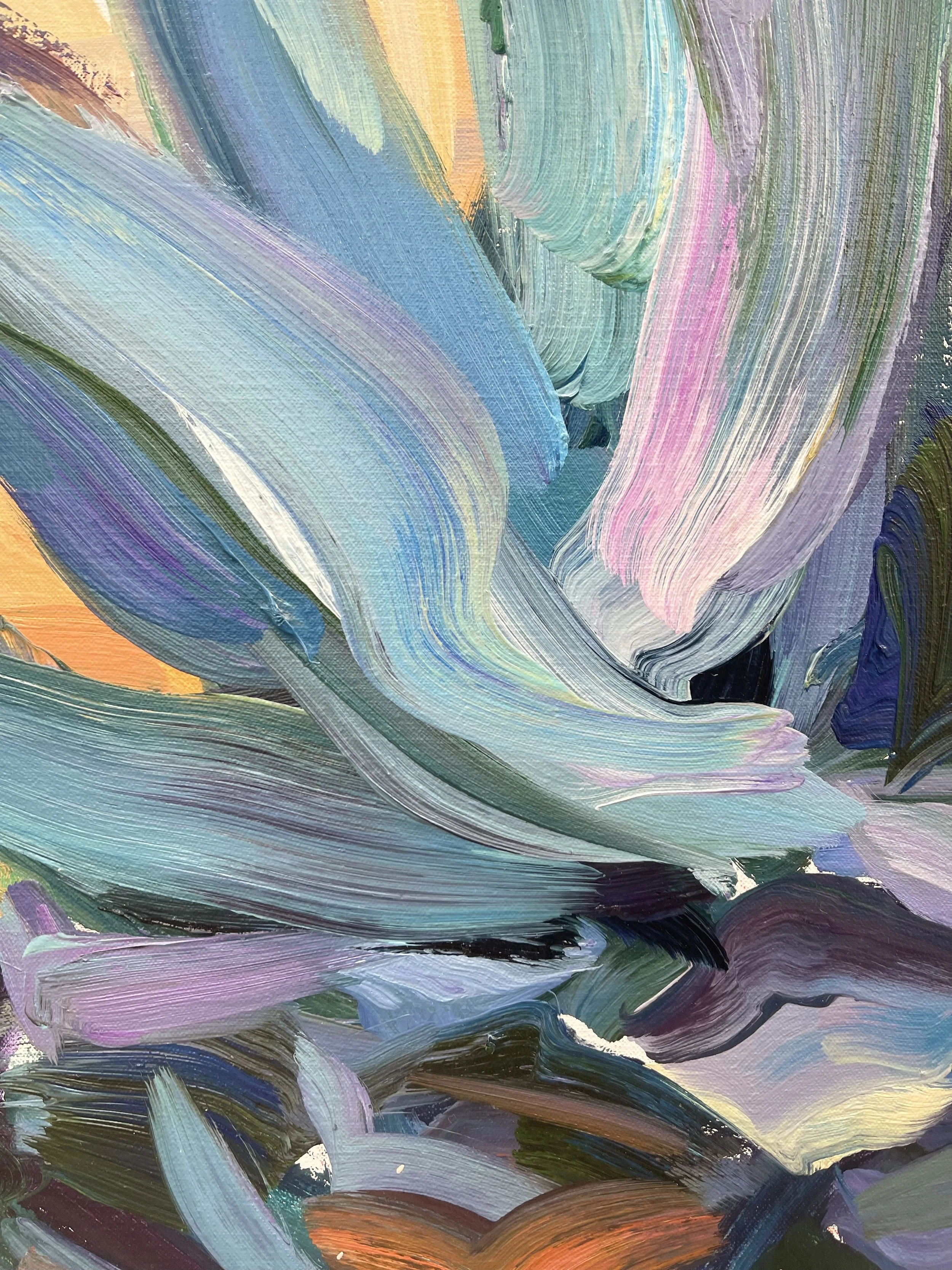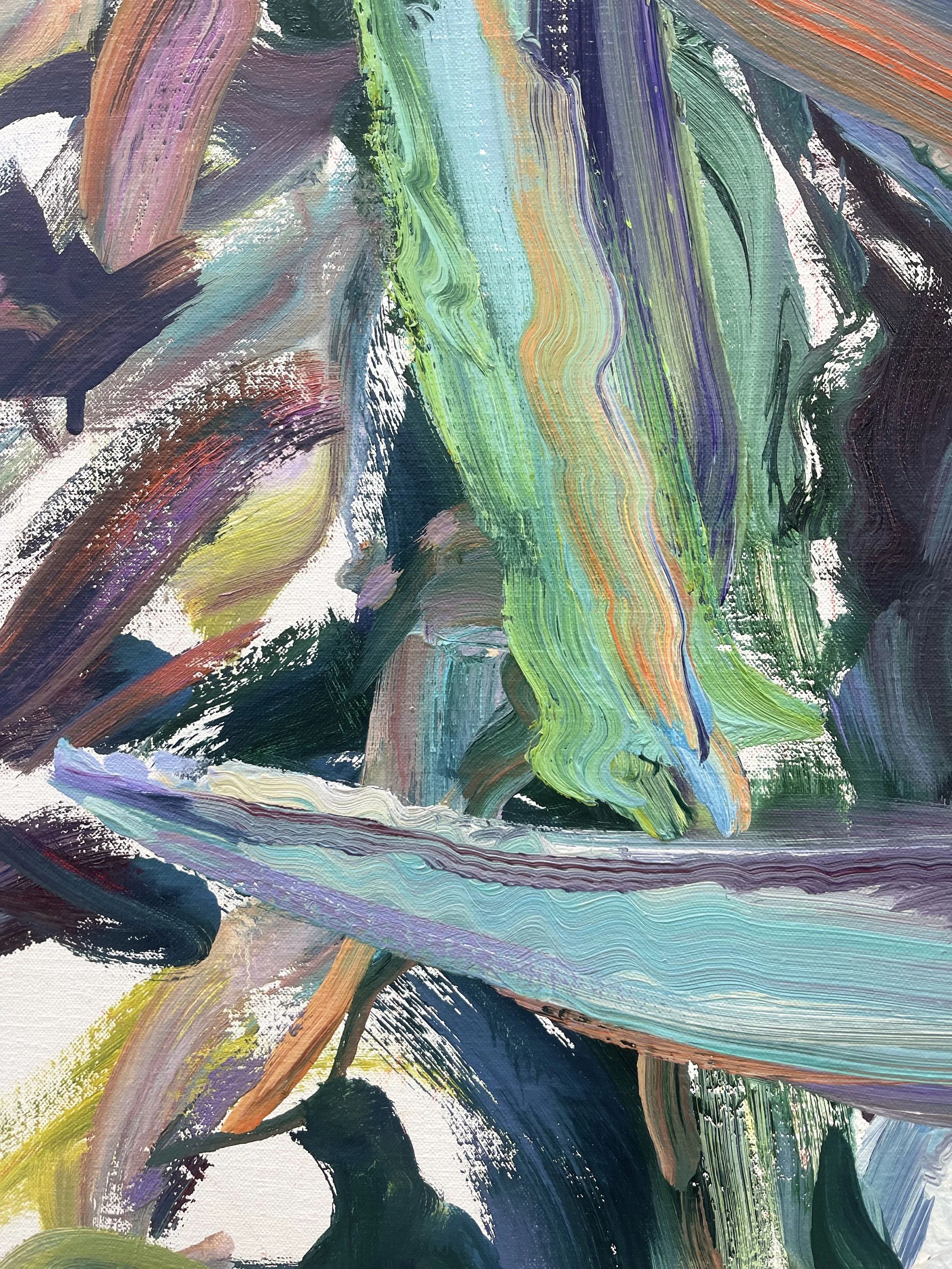En ondulant son pinceau sur la toile, Wylie présente, en une touche éclatante, le cœur de l’exposition : l’eau. Le cactus gorgé d’eau est une source presque sacrée de cet élément vital et pourtant contrôlé au Zimbabwé. L’exploitation de l’eau est priorisée pour les quartiers riches et les grands immeubles modernes qui apparaissent comme un nuage planant au-dessus de la source en arrière-plan dans l’œuvre.